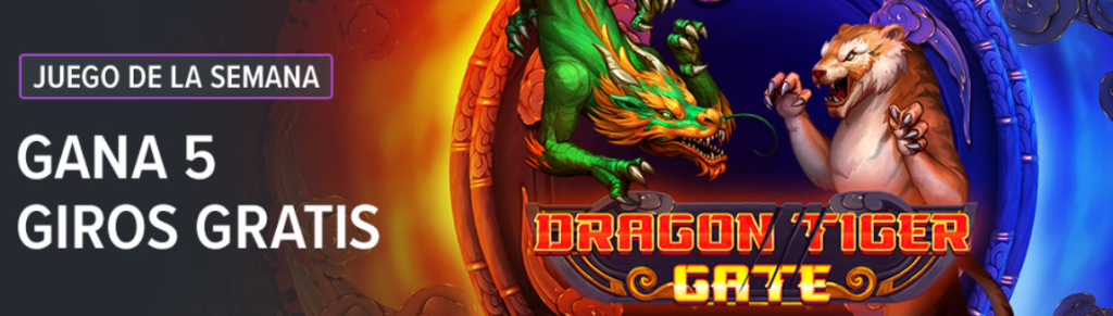 Para esta semana que corre, a principios de marzo, Codere propone el juego Slot Dragon Tiger Gate para participar del Bono “5 Giros Gratis diarios en el Juego de la Semana“.