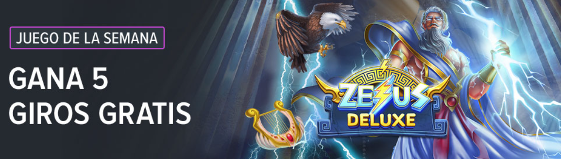 Para esta semana que corre, a principios de marzo, Codere propone el juego Slot Zeus Deluxe para participar del Bono “5 Giros Gratis diarios en el Juego de la Semana“.