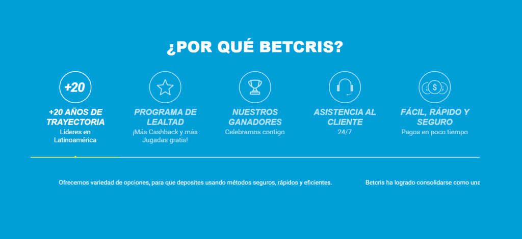 Además, gran par de su actividad se centra en el mercado latinoamericano, disponiendo, también, de puntos físicos de venta donde podrás realizar tus transacciones, cobros, apuestas y retiros. ¡Facilidad y comodidad en Betcris!