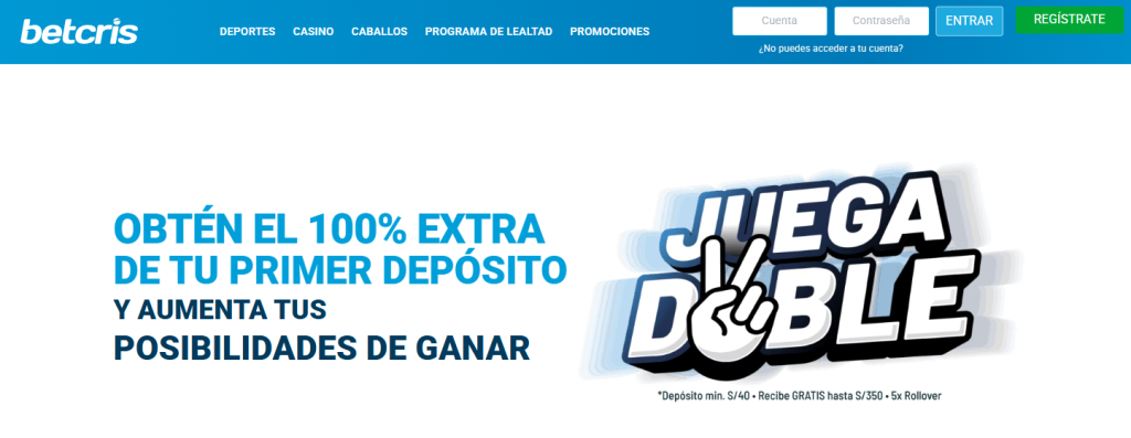 La promoción para nuevos clientes de Betcris es única en su especie. Y es que, si bien su dinámica es como la de muchos otros sitios, en pocos encontrarás una oferta con tan pocos requisitos. Aquí se trata de una bonificación del 100% EXTRA de tu primer depósito. Con esta oferta, puedes conseguir hasta S/350 gratuitos para utilizar en tus deportes favoritos y en cualquier modalidad.