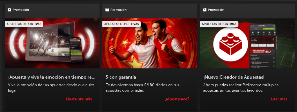 Sus promociones para las apuestas deportivas son geniales, como por ejemplo el Bono de Bienvenida que te brinda hasta S/70 en Apuestas Gratis. Para lo cual solo debes registrarte y luego realizar un depósito de S/40 y una apuesta a cuota de 1,50.