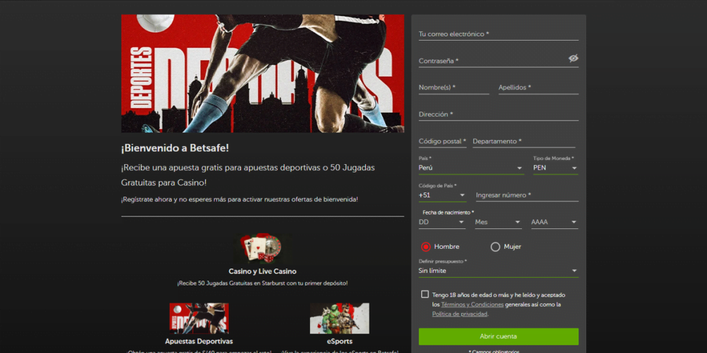 - Deberás registrar una cuenta en Betsafe Perú y realizar un primer depósito.