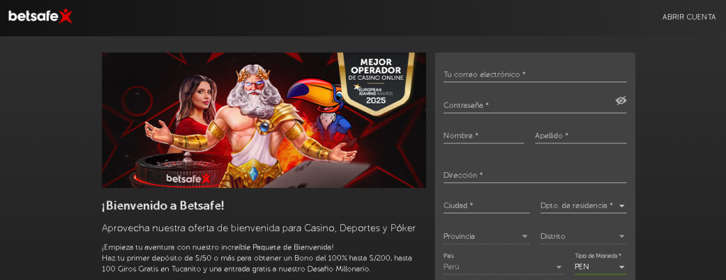 ¿Desea saber como registrarse en Betsafe Perú? Si lo que buscas es abrir una cuenta nueva, te mostramos nuestra guía detallada para lograrlo. Además de todo esto, te contamos lo mejor de sus dos ofertas de bienvenida, en Casino y Deportes. ¡Empieza con S/70 en Freebets o hasta S/200 + 100 Giros Gratis en Tucanito!
