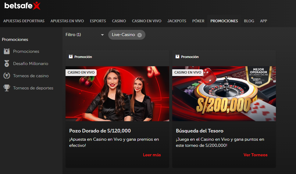 Hay por ejemplo torneos diarios para nuevos jugadores. Todos los días se reparten S/12.000 en premios y el máximo que cada jugador se puede llevar es de S/2.400. Es sin dudas una de las grandes ofertas de Betsafe para disfrutar en mesas de casino en vivo. Un total de 40 jugadores recibirán premios en efectivo.