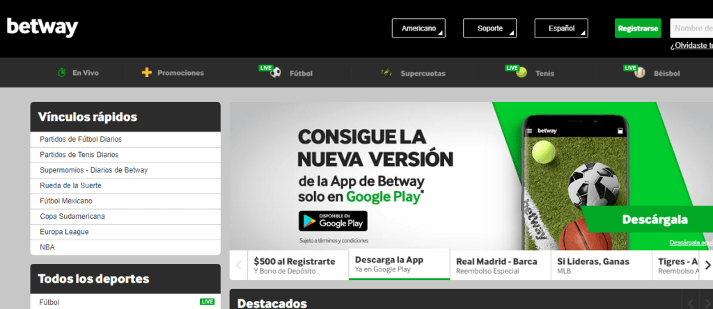 Si estás buscando jugar en Betway o apostar desde el teléfono móvil, te recomendamos que lo hagas a través de su App oficial. Y es que la casa de apuestas y el casino online de Betway ofrecen una aplicación disponible tanto para Android como para iOS. Te hablamos con ella en detalle en este análisis.