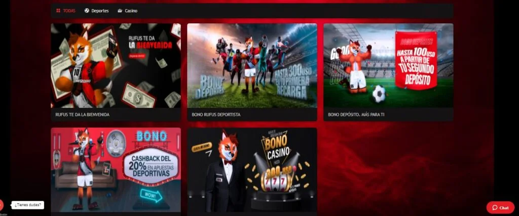 Uno de los principales bonos que posee este sitio es el bono de bienvenida de «Rufus», quien es la mascota que posee BetZorro, este mismo bono te dará S/24, esta misma cantidad de distribuirá de manera equitativa entre juegos de deportes y de casino. Esto quiere decir que tendrás S/12 para deportes y S/12 para casino. Tienes que saber que, sino reclamas el bono dentro de los cinco días hábiles luego de tu registro, no podrás reclamar el mismo.