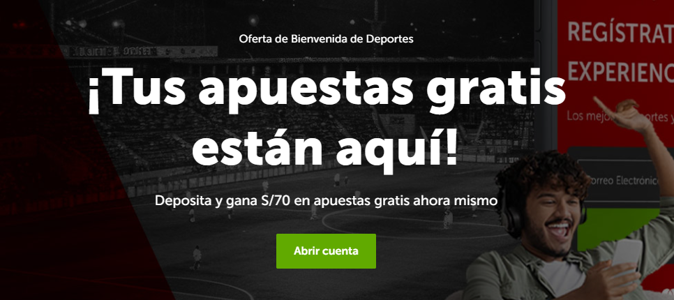 Claramente, sus bonos de bienvenida son los más requeridos. El de apuestas deportivas es de lo más interesante, porque te otorga hasta S/70 en Freebets: una Apuesta Gratis de S/40 y otra de S/30.