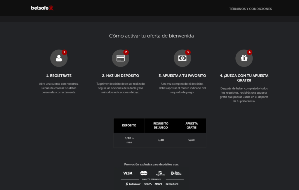 Llegó el momento de contarte todos los detalles del Bono de Betsafe para apuestas. Antes que nada, hablamos de un Bono de Bienvenida. Por lo tanto, es exclusivo para nuevos usuarios que se registran desde Perú. No hay excepciones a esta condición.