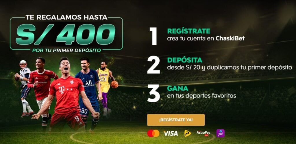 Es necesario efectuar un ingreso de al menos S/20 para conseguir el 100% adicional hasta S/400. ¡Has leido bien! En Chaskibet tienes la oportunidad de iniciar tu aventura de apuestas con dinero completamente gratis.