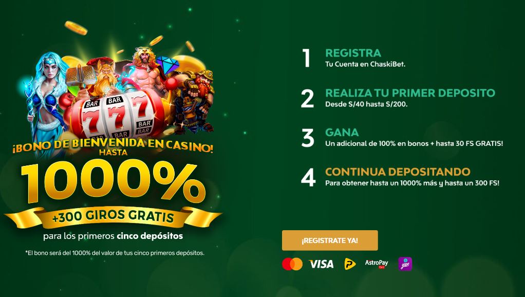 No hay malas noticias si lo que prefieres es iniciar tu experiencia en el casino online de Chaskibet. Por el contrario, la casa también ofrece un magnífico bono de hasta el 1000% adicional en tus primeros cinco depósitos. ¿No suena increíble? ¡Y eso no es todo! Junto con ello podrás recibir hasta 300 giros gratis. ¡Sensacional!
