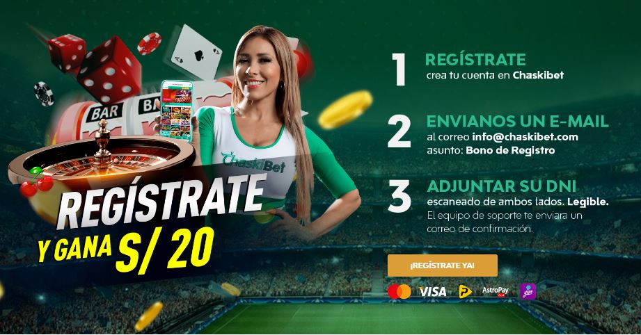 ¿Sabías que en ChaskiBet tienes la posibilidad de solicitar un bono sin depósito de S/20 por el simple hecho de registrarte en la plataforma? ¡Recuerda hacerlo antes de efectuar el primer depósito!