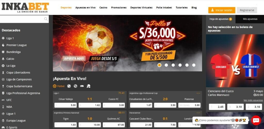 Tanto la Liga 1 de Perú, como las principales ligas y copas de Sudamérica y Europa son de la partida en este sitio. En cuanto a los mercados y cuotas, este sitio también se posiciona entre los mejores. Un partido destacado de Fútbol tendrá siempre aproximadamente 70 tipos de apuestas, y siempre con cuotas de las más altas. Y por si fuera poco, ¡Conoce el Bono de Inkabet para Apuestas!