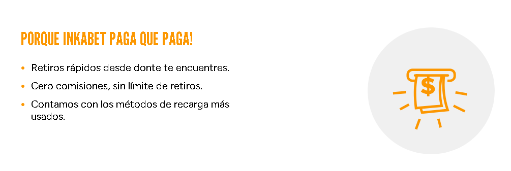 Al momento de seleccionar un método de pago, ten en cuenta que Inkabet siempre buscará que retires con el mismo método que empelaste para depositar fondos. Tenlo muy en cuenta al momento de tu elección.