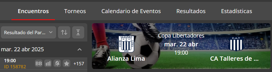| Copa Libertadores | Alianza Lima vs Talleres |