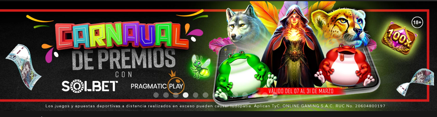 Aprovecha el Carnaval de Premios por el mes de marzo gracias a Solbet y al proveedor Pragmatic Play. Juega, celebra la alegría y gana. ¡Es momento de lucirte en Solbet Perú!