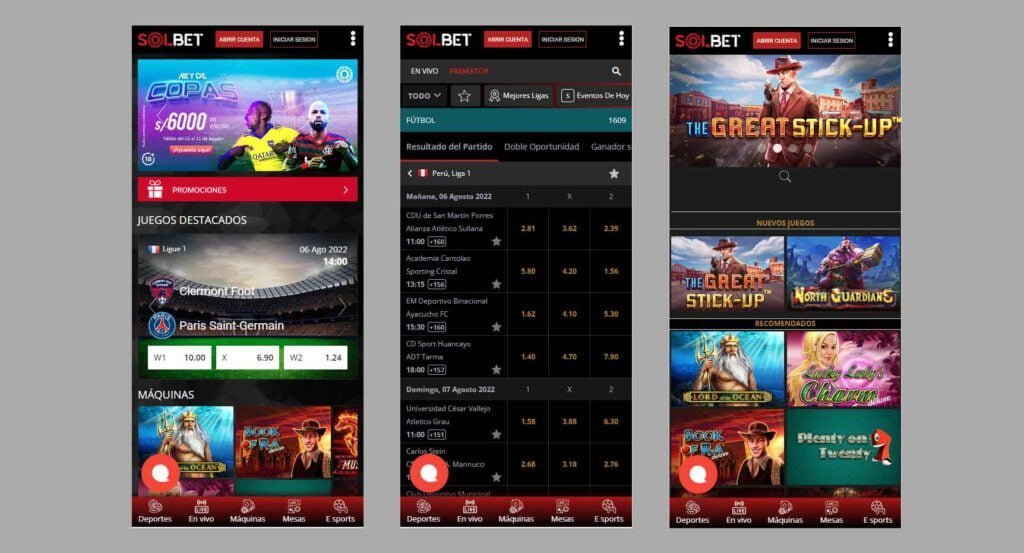 Solbet no cuenta con aplicación móvil, pero el sitio web presenta un diseño responsive que se adapta perfectamente a todos los tamaños de pantalla y sistemas operativos.