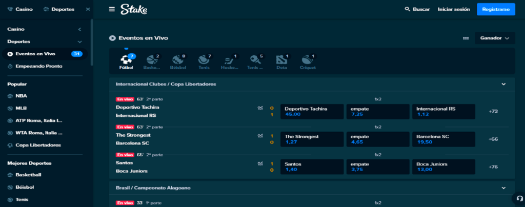 Con respecto a las Apuestas, encontrarás en Stake un sitio muy completo. Su Sportsbook nos propone participar en más de 30 disciplinas deportivas (incluyendo los eSports), y en cada una de ellas encontrarás múltiples competiciones y eventos donde podrás hacer pronósticos.