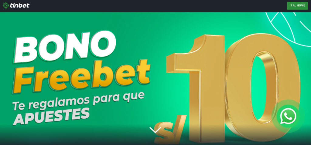 Las buenas noticias continúan. Porque Tinbet también posee un Bono Freebet, que consiste en una Apuesta Gratis de S/10. La misma debe ser utilizada en una combinada de al menos 3 eventos a cuota de 1.90. Y recuerda que el Bono Freebet vence 5 días después de activado. Si no lo has usado en el tiempo dado, se eliminará el monto del Bono y las ganancias. Al igual que en el caso anterior, esta oferta no se puede acumular con otras.