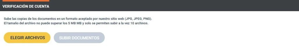 - Pincha en el botón «Elegir archivos» y selecciona cada una de las imágenes de tu DNI por las dos caras.