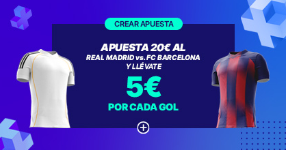 Llega el partido más importante del fútbol español. En esta jornada 10 se disputa el Clásico y tu apuesta en Kirolbet tendrá premio extra. Tanto si ganas como si pierdes tu pronóstico, conseguirás 5€ por cada gol que se marque en el encuentro.