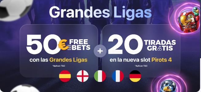 - Bono especial 44 aniversario: consigue freebet de hasta 100€ y completa la promoción con: 44 tiradas gratis (código TIRADAS44), 44 fichas doradas (código FICHAS44) o 44€ de bono casino (código BONO44).