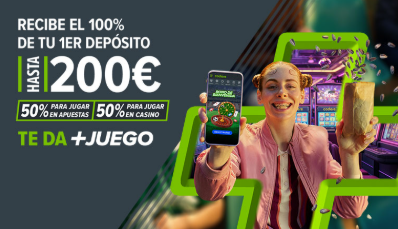 Los nuevos usuarios pueden aprovechar una ventaja extra con el bono de bienvenida del 100% hasta 200€. Este incentivo se reparte en un 50% en freebets para apuestas deportivas y un 50% en bono de casino, ofreciendo más margen para explorar todas las funciones de la plataforma.