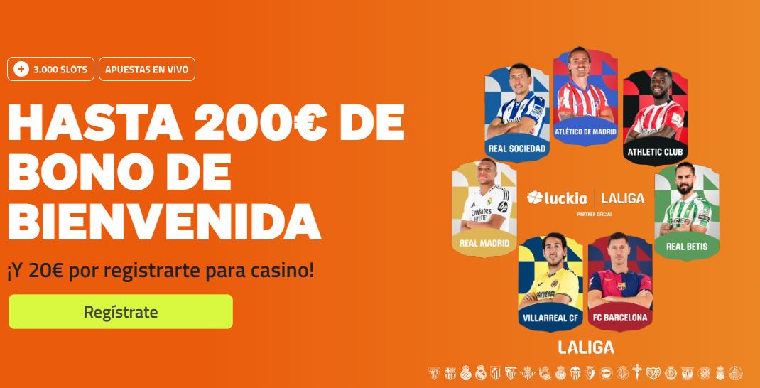 - Acepta el bono de bienvenida si quieres empezar a aposatar con hasta 200€ extra.