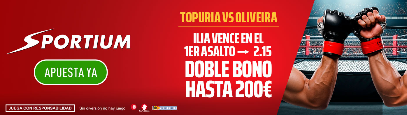 - Sportium: Consigue hasta 200€ en apuestas gratis. Te regalan el 100% de tus dos primeros depósitos (hasta 100€) en forma de freebets.