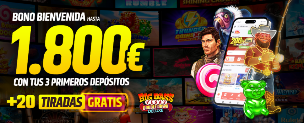 Si eres nuevo usuario de Solcasino, debes aprovechar su bono de bienvenida. Se trata de uno de los mejores para nuevos clientes, ya que te bonifican un 200% de tu primer ingreso hasta 600€. Además, disfruta de 20 TIRADAS GRATIS en Big Bass Vegas Double Down Deluxe de Pragmatic Play, el juego donde los premios están siempre a punto de picar.