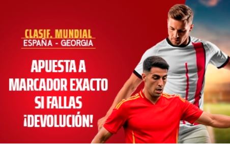 - La promoción es válida únicamente para apuestas simples al mercado Marcador Exacto en el partido España vs Georgia de la Clasificación Mundial 2026.