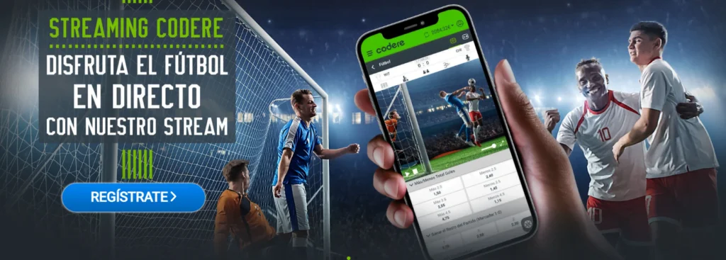 Dentro de la web de Codere podrás ver los encuentros que tengan un icono azul «Play» en la derecha, y los requisitos con los que tendrás que cumplir son: