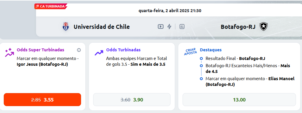 A fase de grupos da Copa Libertadores da América, o campeonato de futebol mais importante do continente americano em nível de clubes, está começando. E Betano está no auge desse evento, com uma Odd Turbinada para a partida entre Fortaleza e Racing.