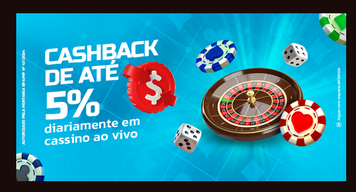 No caso do cashback de 5% no cassino ao vivo, você só precisa jogar qualquer jogo de cassino ao vivo. No caso de torneios, você deve participar dos jogos selecionados. Não há valores mínimos nem quaisquer outras condições. E é acessível a todos os usuários maiores de 18 anos cadastrados no Brasil.