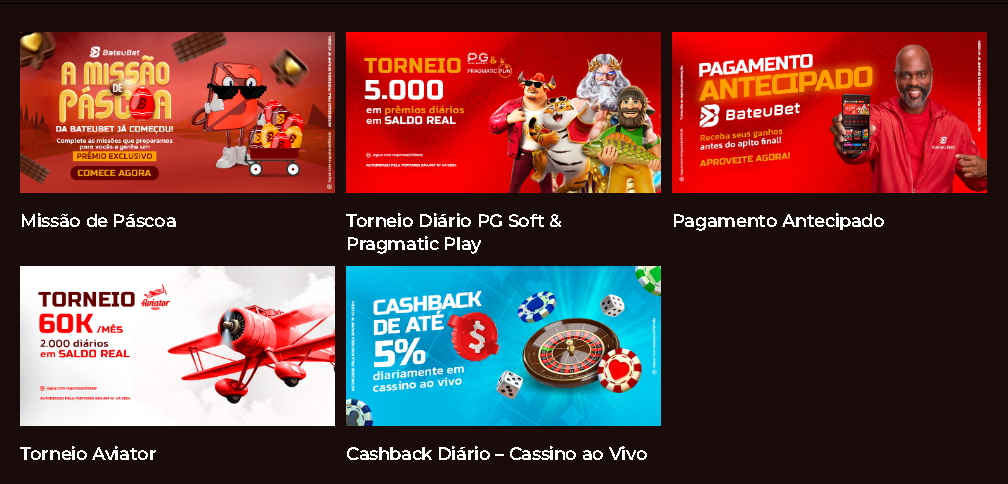Há também outras promoções da BateuBet no Brasil, como pagamentos antecipados em apostas esportivas. Para saber mais sobre todas as ofertas disponíveis, confira esta análise completa do BateuBet no Brasil.