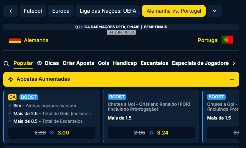 Apostas Aumentadas no Alemanha x Portugal na Estrelabet: Semifinal da Liga das Nações UEFA!