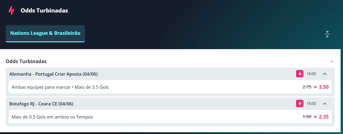 Faça login na sua conta Estrelabet agora e vá para a seção “Liga das Nações da UEFA” para acessar todos os mercados disponíveis para o evento. Você pode apostar no resultado final, por exemplo, ou em vários mercados exclusivos. E você notará que as probabilidades melhoram rapidamente!