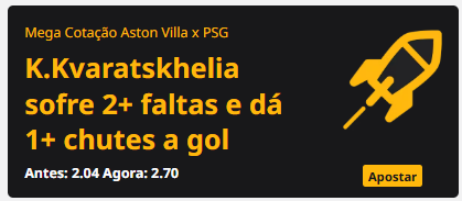 Apostas Aumentadas no Aston Villa x PSG na Estrelabet!