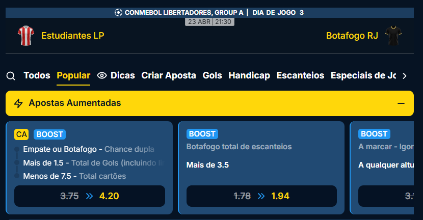 Apostas Aumentadas no Estudiantes x Botafogo na Estrelabet!