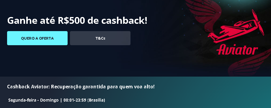 Para receber o Cashback, as perdas no Aviator durante o período da promoção devem ser de, no mínimo, R$ 100. Sobre o valor das perdas, será aplicado 10% de cashback, até o máximo de R$ 500. Obviamente, você deve ter pelo menos 18 anos de idade.