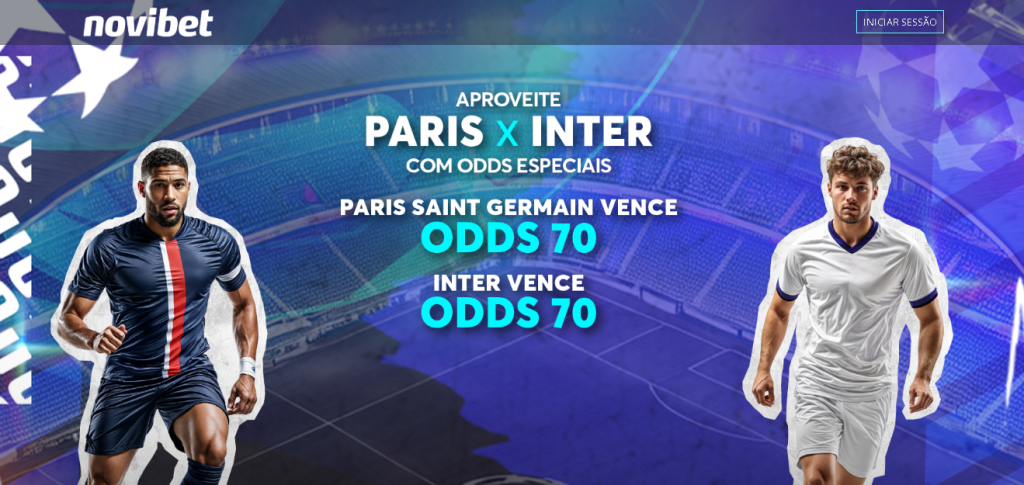Lembre-se de que a final da Liga dos Campeões será entre Inter e PSG neste sábado, 31 de maio, na Allianz Arena, em Munique. É possível aproveitar as cotas especiais da Novibet até antes do pontapé inicial.