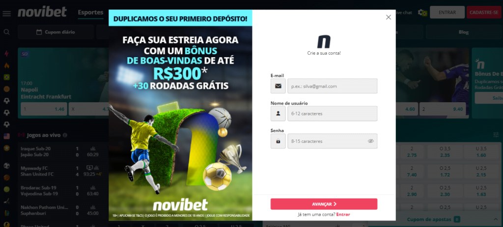 Para começar neste site de apostas, você precisará preencher seu formulário de inscrição. Isto lhe permitirá acessar todos e cada um dos mercados que a Novibet tem a oferecer. Desta forma, você terá a possibilidade de jogar em um dos maiores sites de apostas do Brasil.
