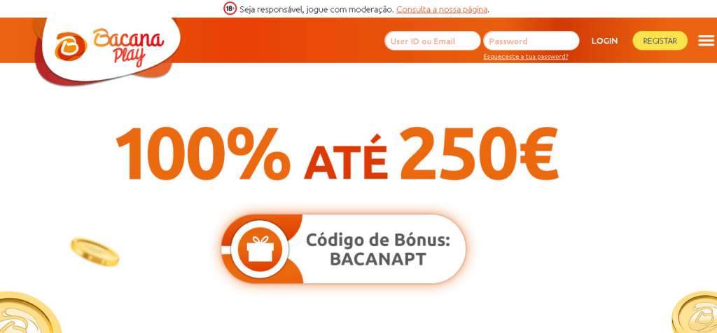 Abra uma conta em BacanaPlay a partir de Portugal, introduza o código promocional bacanapt20 e deposite pelo menos 10 EUR.
