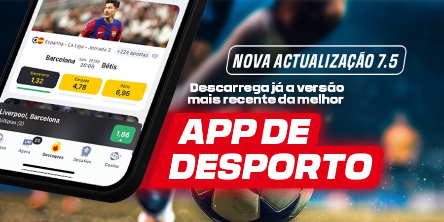 Betclic é a principal aplicação de apostas desportivas com uma classificação de 4,8+ na App Store. Instale a versão 7.5 em dispositivos Android e iOS para desfrutar de uma navegação simplificada, rápida e intuitiva – leve o seu boletim de apostas consigo para onde quer que vá!