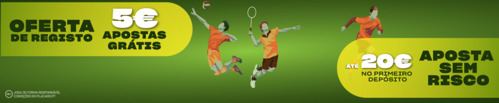 A oferta de inscrição para fãs de apostas esportivas no Placard é a seguinte: ganhe uma aposta grátis + rodadas grátis! Fazemos a ressalva “para fãs de esportes” porque você também pode reivindicar um bônus de boas-vindas específico do cassino Placard e obter 100 rodadas grátis + 100% no seu primeiro depósito até € 100. Além disso, receberá também um pequeno pacote de rodadas grátis para o casino! No entanto, cada pessoa só tem direito a um bônus de boas-vindas.
