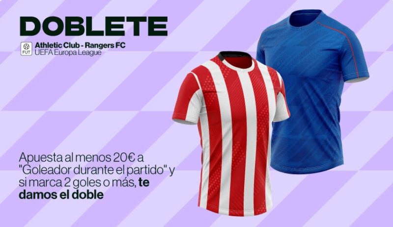 RETAbet presenta una promoción exclusiva para el esperado duelo entre Athletic Club vs Rangers: la Promoción Doblete. Si seleccionas a un jugador en el mercado «Goleador durante el partido» y anota dos o más goles, recibirás el doble de tus ganancias en Freebets. Es una oportunidad perfecta para maximizar tus ganancias en este emocionante encuentro.