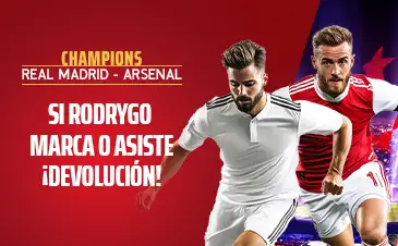 El Real Madrid debe remontar un 3-0 si quiere seguir vivo en Champions ante un Arsenal que va a darlo todo por colarse en las semifinales y eliminar al vigente campeón. Desde la casa de apuestas de Sportium quieres que disfrutes al máximo de tu pronóstico. Por eso, ha lanzado una promoción en forma de apuesta con seguro del 50% gracias a la que si fallas, te devuelven el 50% de lo que hayas apostado. ¿Quieres saber cómo funciona? Quédate con nosotros, aquí te lo contamos.