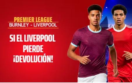 Sportium lanza una atractiva promoción para el enfrentamiento entre Burnley vs Liverpool de la Premier League. Si apuestas al partido y tu pronóstico no acierta, pero el Liverpool pierde, recibirás el 50% de tu apuesta como Freebet, hasta un máximo de 10€. Además, si aún no eres cliente, puedes aprovechar su bono de bienvenida de hasta 200€ en apuestas gratis.