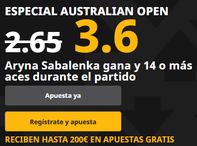 En cualquier caso, esta Supercuota 3.60 para la final femenina del Open de Australia 2026 es una de las opciones más interesantes del torneo para quienes confían en el poderío al saque de Aryna Sabalenka en el día más importante del campeonato.