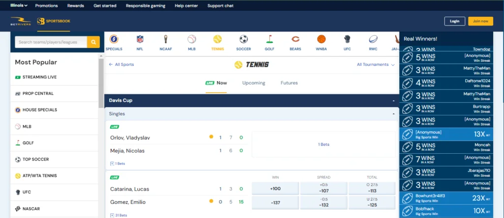 In this section, we will explain the best tennis events within BetRivers. Which you will be able to find if you are a user in Illinois. In this way, you will find the best options to make great plays.
