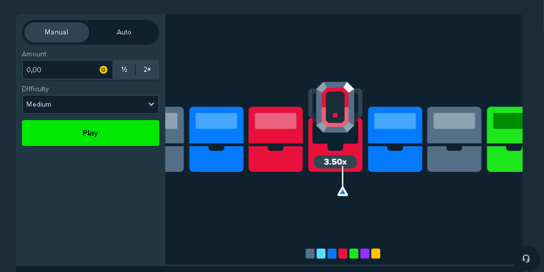 In Cases you will be able to select the difficulty level you prefer. In this sense, there are 4 options: Easy, Medium, Hard and Expert. Of course, the chosen level will influence the size of the multipliers, the volatility of the game and the distribution of rewards.